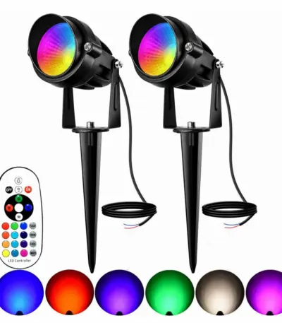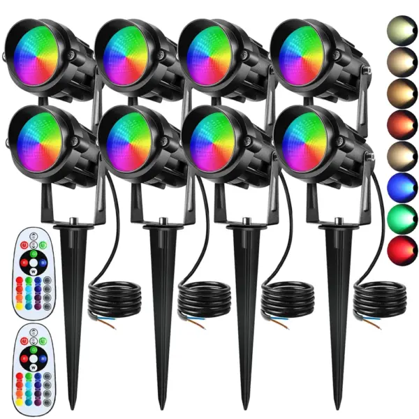 Landscape Light Color Change Spotlight Outdoor LED Garden Lawn Lamp 12W Waterproof Remote RGBW Landscape Lighting for Path Yard