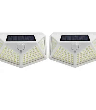 JVEE 2PCS White 100LED Solar Wall Lamp All Sides Luminous Motion Sensor Human Induction Yard Waterproof Stairs Outdoor Light