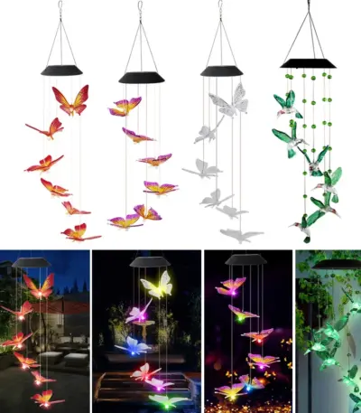Led color changing solar wind chime light Waterproof Outdoor Windchime Butterfly Light Solar Hanging Lamp for Garden Decoration