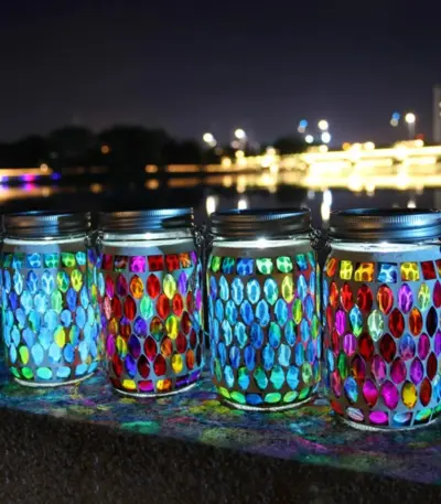 LED Mosaic Solar Light Waterproof Solar Glass Bottle Jar Table Lamp Glass Table Lamp for Garden Party Camping Terrace Yard Decor