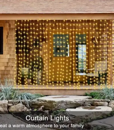 LED Curtain Solar String Lights Outdoor Garden Pavilion Window Ramadan Christmas Wedding Party Decoration Holiday Hanging Light