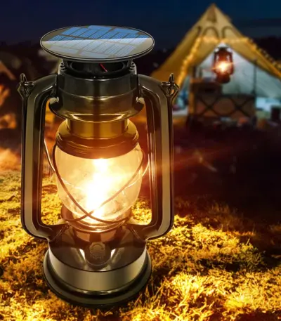 LED Solar Vintage Lantern Outdoor Hanging Metal Antique USB Charging Solar Light for Garden Yard Decor Or Camping Hiking