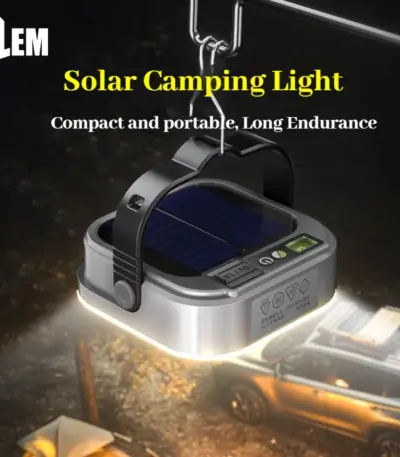 LEM Solar Lamp Light Camping Outdoor Led 800 LM Long Endurance Rechargeable Waterproof Tent Lights Digital Display & Hook Design