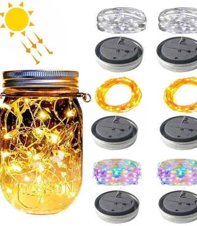 Mason Jar Lid Fairy Light Solar Power Waterproof Decorative DIY Jar, Bottle Light Garden Decor Christmas Lights Wedding Decor