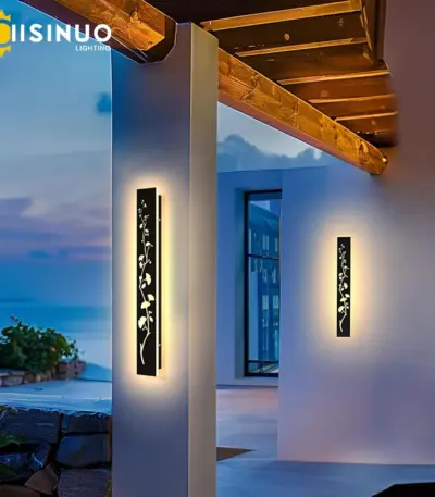 Outdoor Waterproof Stainless Steel Wall Light with Lotus Pattern IP65 Rustproof Long Wall Lamp for Garden Courtyard Villa Garage