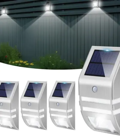 Solar Fence Light Stainless Steel Outdoor Waterproof Solar Powered Deck Light Wall Mount Yard Patio Motion Sensor Security Light