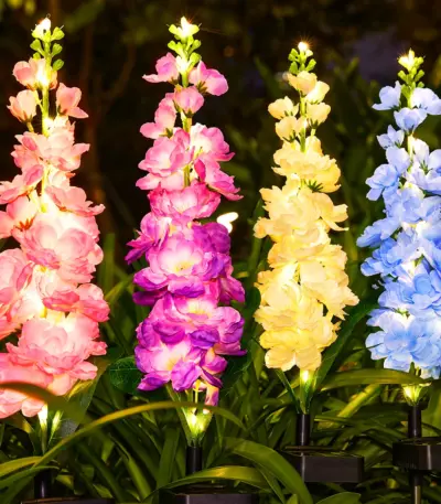 Solar Garden Lights, Upgrade Delphinium Waterproof Solar Flower Lights, For Party Garden Decoration Yard Patio Lawn Decor