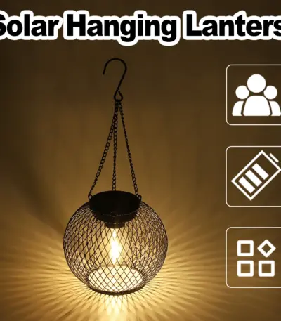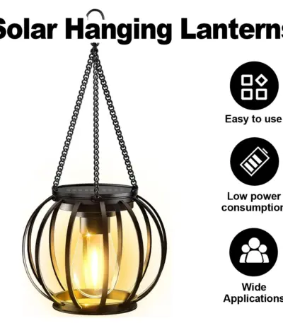 Solar Lantern Led Light Warm White Lamp Outdoor Sensor Garden Lights Waterproof Patio Yard Decoraiton Hanging For/outdoor Hollow