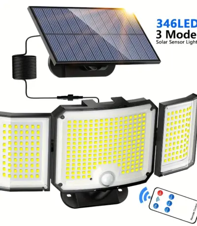 Solar Lights Outdoor with 3 Modes Motion Sensor 346LED Solar Security Lights Waterproof 3 Head Solar Wall Lamp for Patio Garden