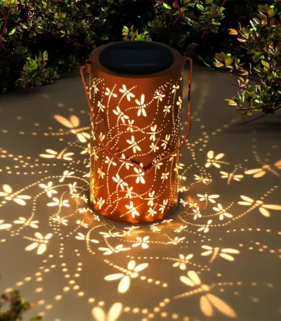 Solar Powered Lantern with Dragonfly Design Durable Metal Outdoor Hanging Light Solar Charged Lamp for Garden Pathway Landscape