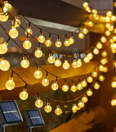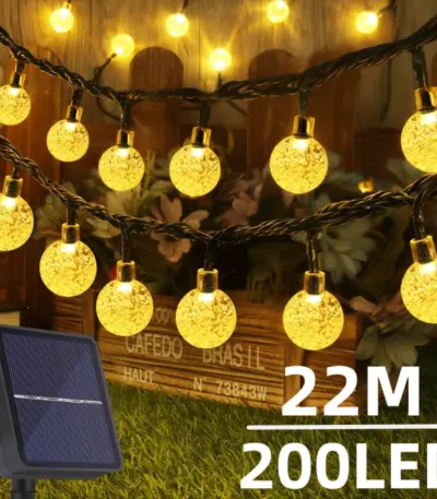 Solar String Lights Outdoor 200 Led Crystal Globe Lights Waterproof Solar Festoon Fairy Light for Garden Christmas Outdoor Decor