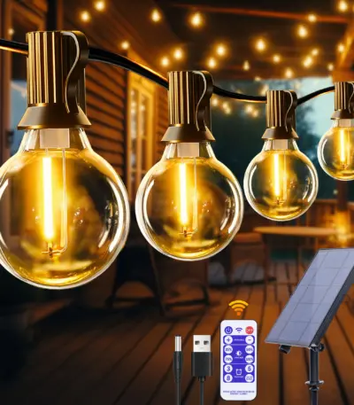 Solar String Lights Outdoor G40 Patio Lights with LED Shatterproof Bulbs,Weatherproof Hanging Lights for Backyard Bistro