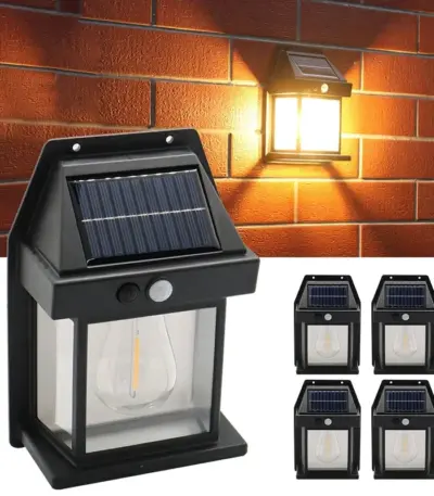 Solar Tungsten Night Lamp Intelligent Motion Sensor Wall Lamp 3 Lighting Modes Waterproof Courtyard Garden Decoration Lantern