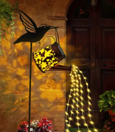 Solar Watering Can Light LED Hummingbird Hanging Solar Fairy Lamp Outdoor Waterproof Villa Path Lawn Lamp for Yard Garden Decor