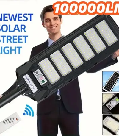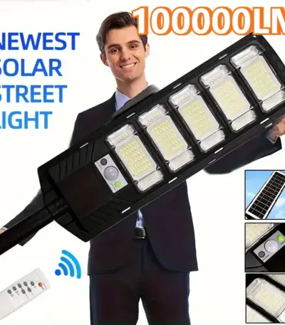 100000LM Solar Light Commercial LED Outdoor Dusk To Dawn Solar Street Light Road Area Lamp Waterproof Backyard Security Lighting