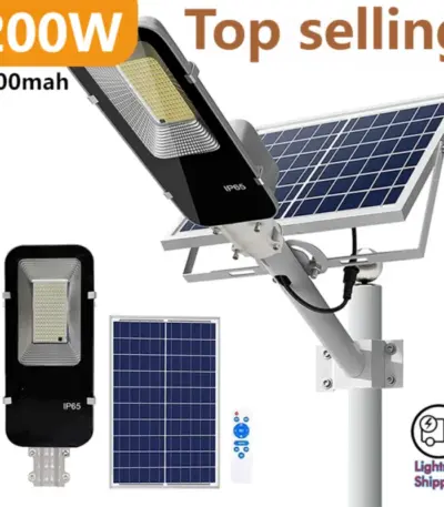 200W Powerful Solar Light Outdoor Solar Street Light 6000mah Waterproof Automatic Dusk to Dawn Street Light For Garage Garden