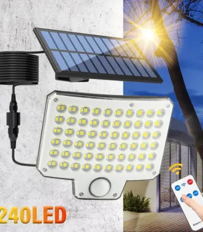 240 LED Solar Lights Outdoor Motion Sensor Security Lights with Remote 3 Modes Waterproof Solar Floodlight for Garden Wall Lamp