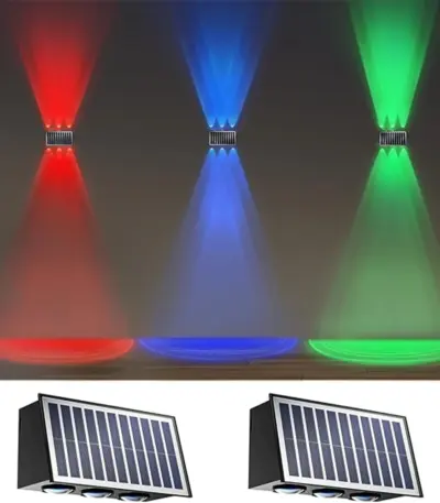 4/6/8 LED Solar Fence Lights RGB Wall Lamp Outdoor Modern Up and Down Lights Waterproof Yard Garage Porch 2 Mode Garden Light