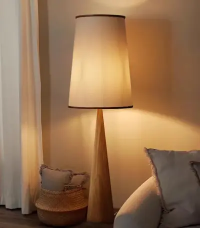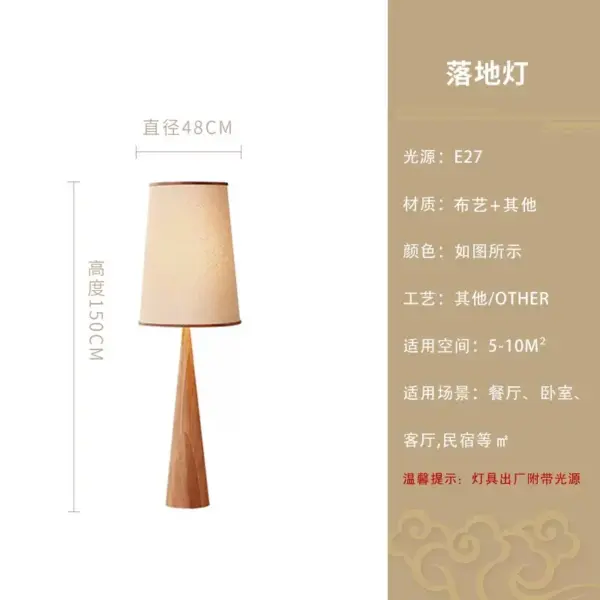 Solid Wood Zen Art Floor Lamp LED E27 Atmosphere Cloth Lampshade Living Room Corner Lamp Sofa Homestay Cafe Bedroom Bedside Lamp