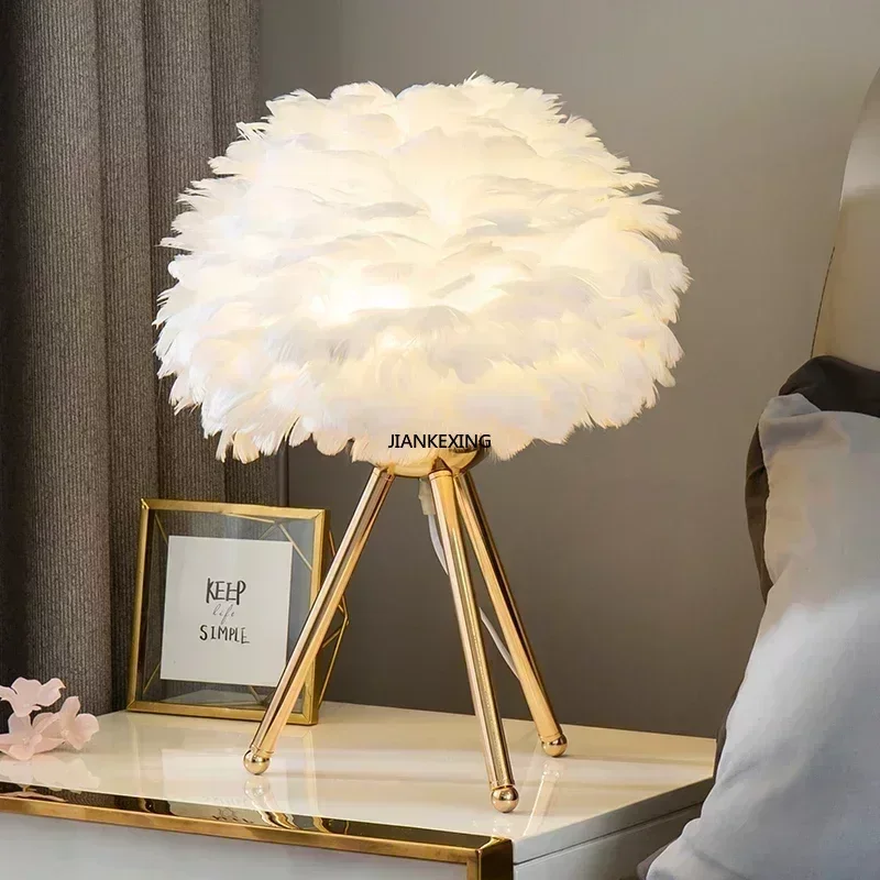 Feather Bedroom Table Lamp New Bedside Living Room Coffee Shop Wedding Christmas Decor Romantic Goose Lamparas