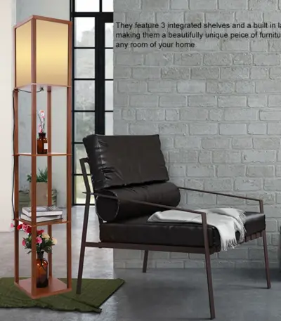 Floor Lamp Modern Oak Wooden Fabric Floor Lamp with Built In Shelving Units for Lounges Hallway Wooden Fabric Floor Lamp