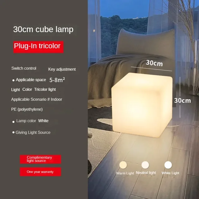 Floor Lamp Side Table Abs Frosted Controlle 3color Light Simple Square Bedside Living Room Sofa Corner Table