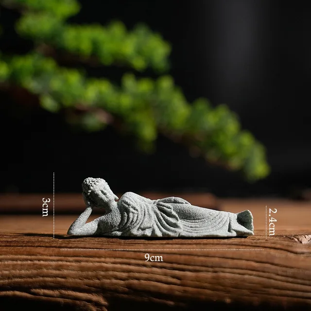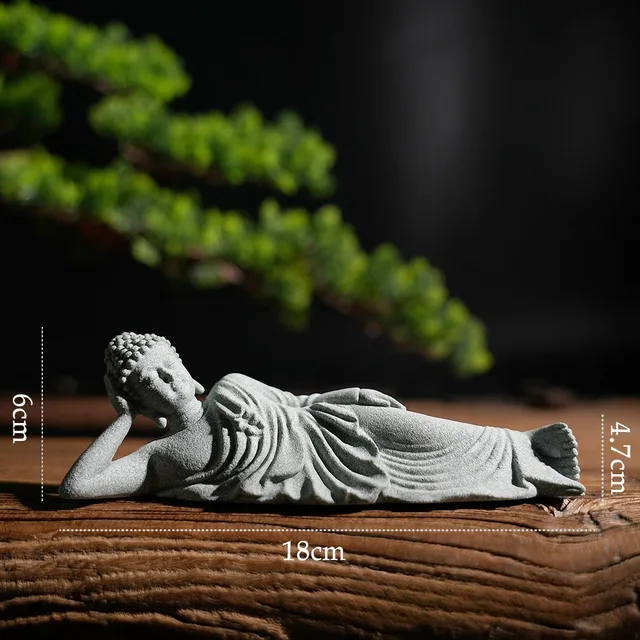 Buddha Reclining Meditating Carving Statue Feng Shui Collectibles Figurine for Home Garden Bonsai Fish Tank Desk Yard Decoration