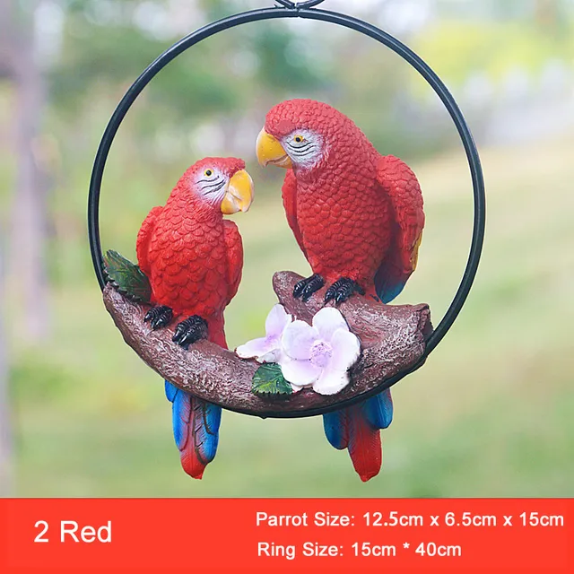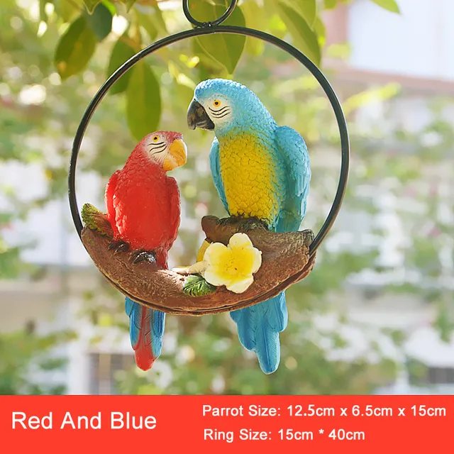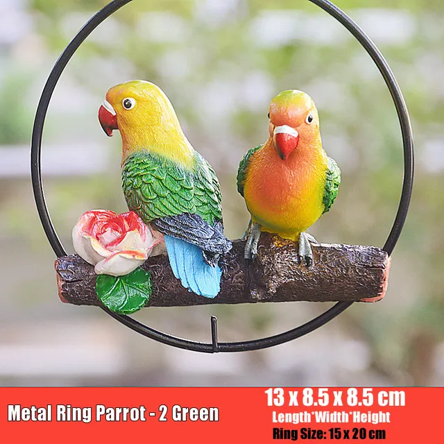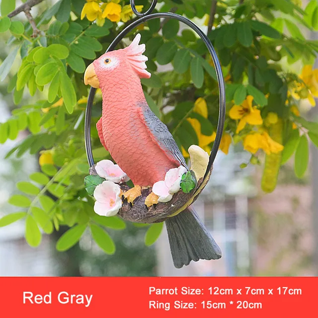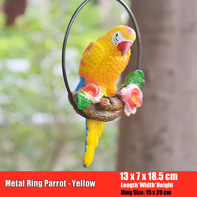 Creative Resin Parrot Hang On Tree Outdoor Garden Decoration Statue Animal Sculpture For Home Office Room Garden Decor Ornament