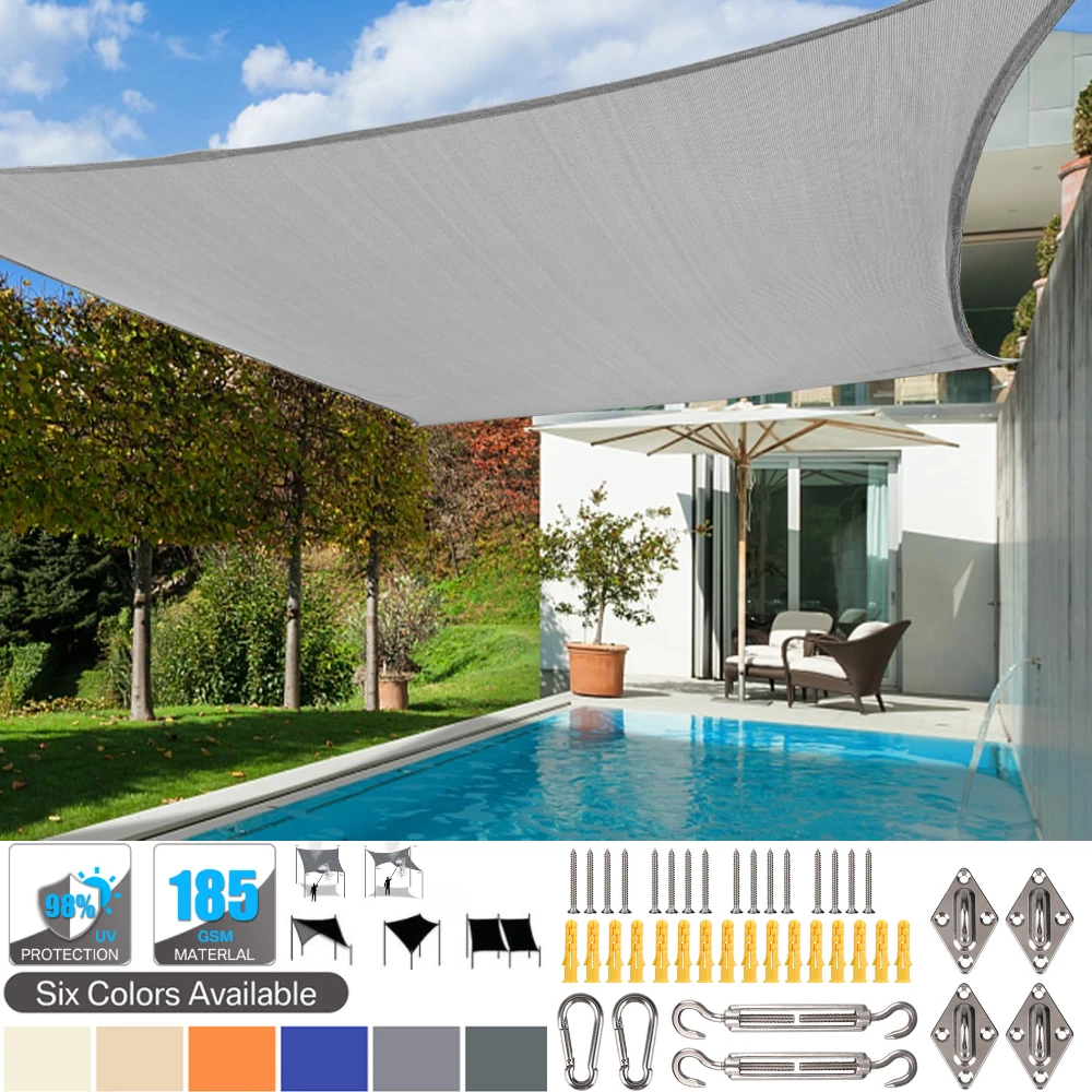 2/3/4/5/6M Waterproof Sun Shade Sail with Hardware Kits Rectangle UV Block Canopy Awning Outdoor Patio Garden Sun Shelter Tents