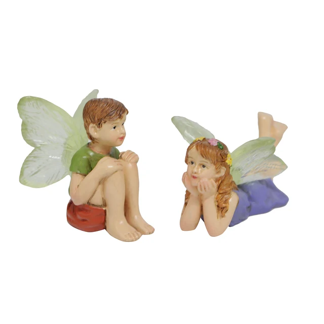 2pcs Funny Fairy Boy And Girl Statue, Fairy Garden Accessories, Resin Sculpture For Micro Landscape Flowerpot Lawn Yard Garden F
