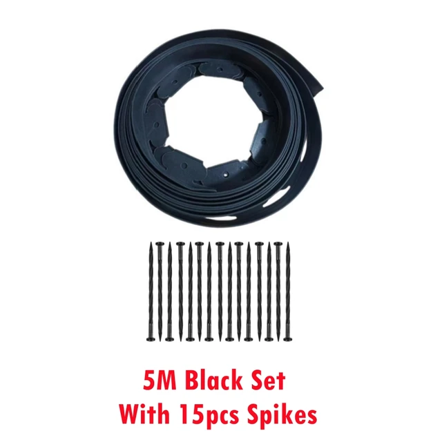 5M Fixed Garden Barrier Lawn Grass Plastic Edging Border Landscape Edging Garden Edge Kit With 15 Anchoring Spikes Easy Install