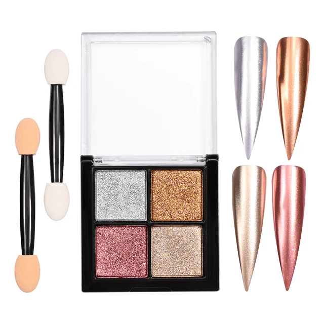 6/4Grids Aurora Solid Mirror Nail Powder Metallic Colorful Dust Metal Effect Nail Glitter UV Gel Polish Chrome Flakes Pigment *+