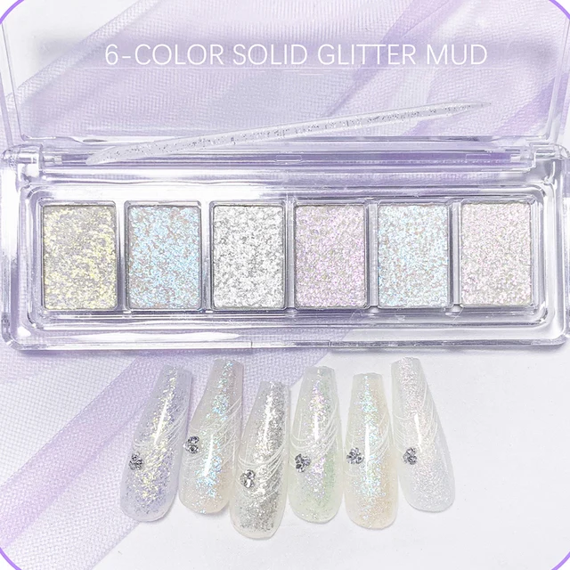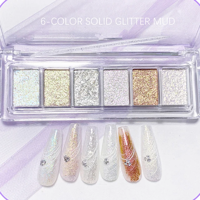 6Colors Mirror Nails Powder Metallic Chrome Effect Pigments Gel Polish Laser Dust Glitter Aurora Shiny Pearl Manicure Glitter