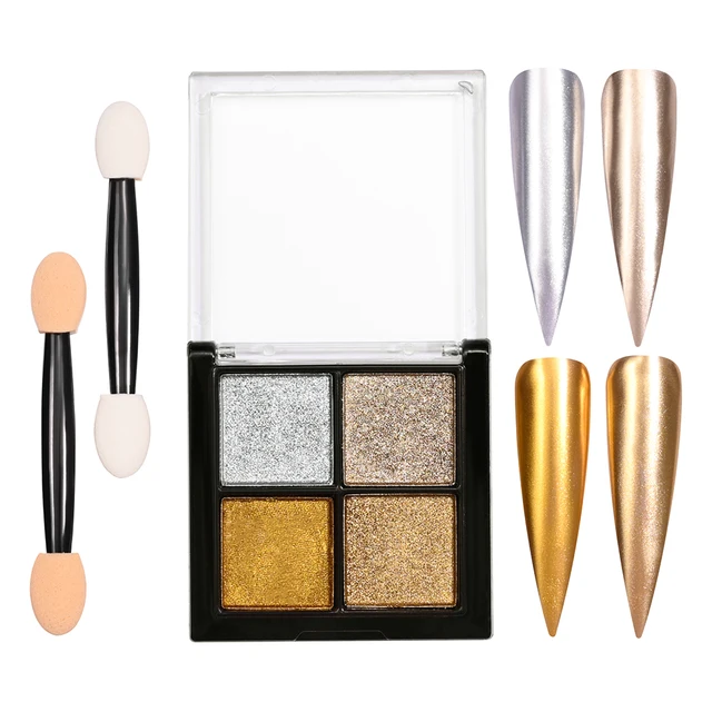 6 Pcs Elegant Mirror Chrome Effect Metallic Dust Holographic Glazed Manicure Decoration Reflective Gold Silver Glitters Powder