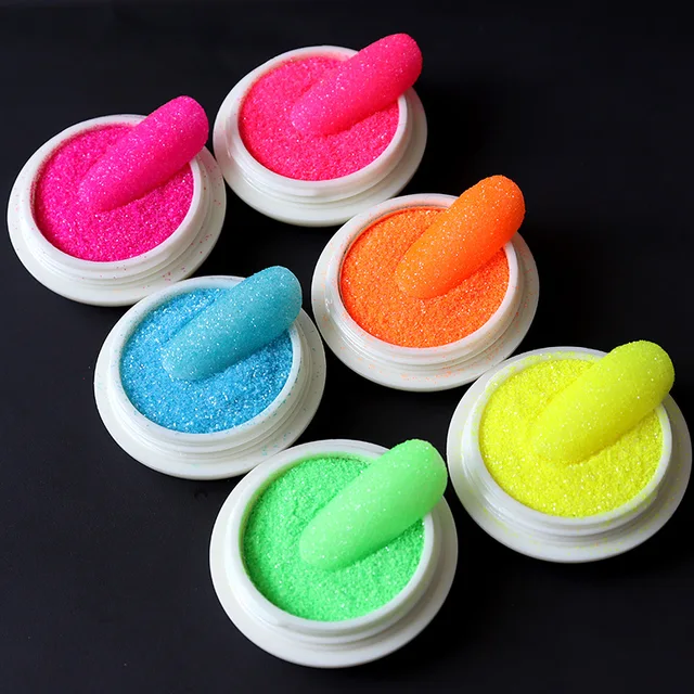 6PCS/SET Luminous Nail Glitter Powder Glow In The Dark Green Orange Neon Pigment Dust Fluorescence Luminescent Manicure Decor