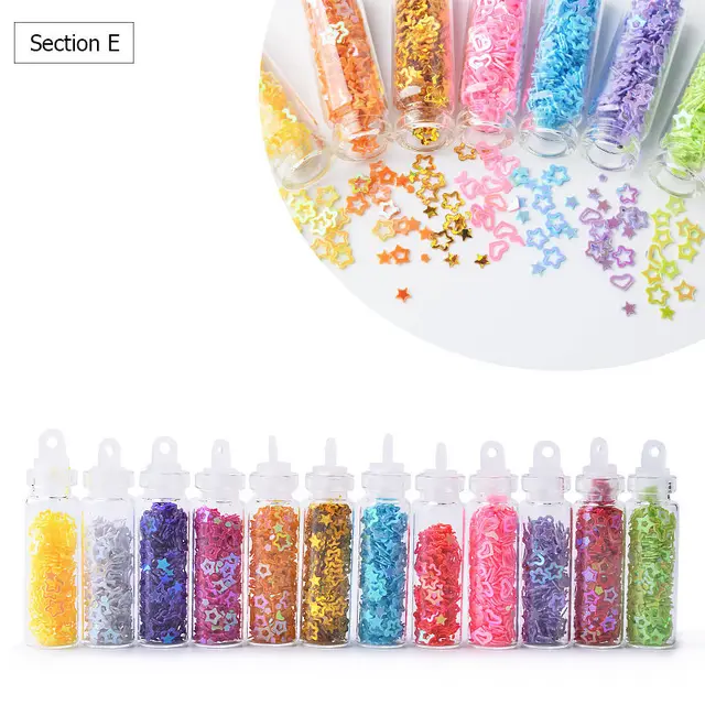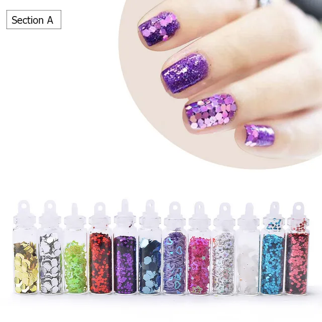 12 Bottle Nail Art Decoration Nail Sequins Glitter Thin Flakes Decorations Sets Sequins for Nails Art Flash Foils Charms Laser
