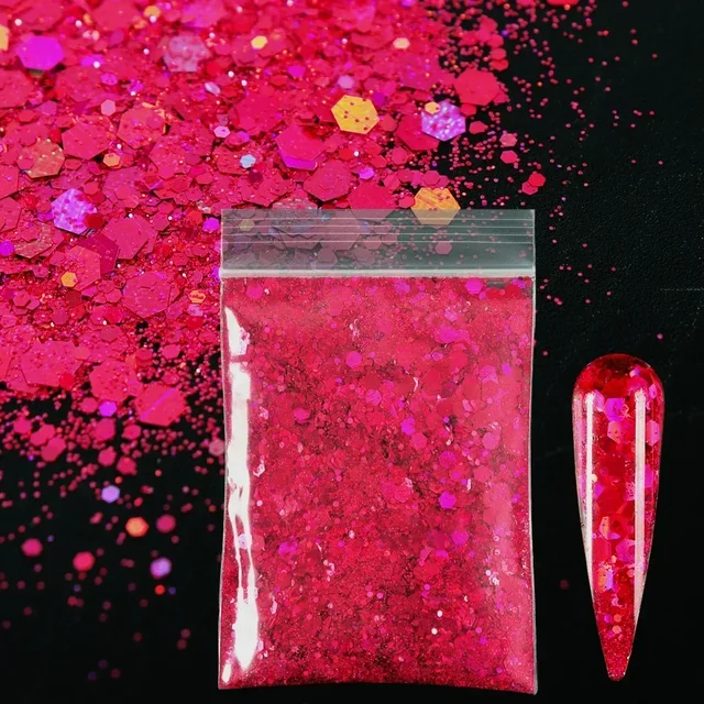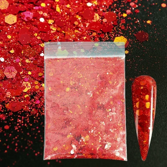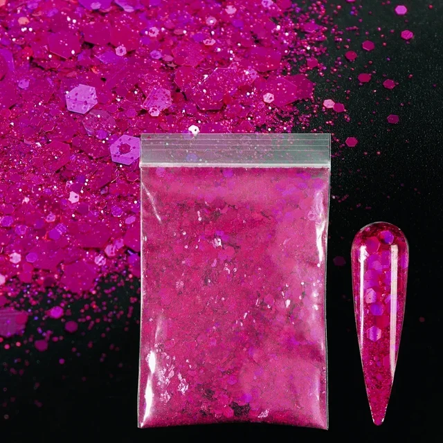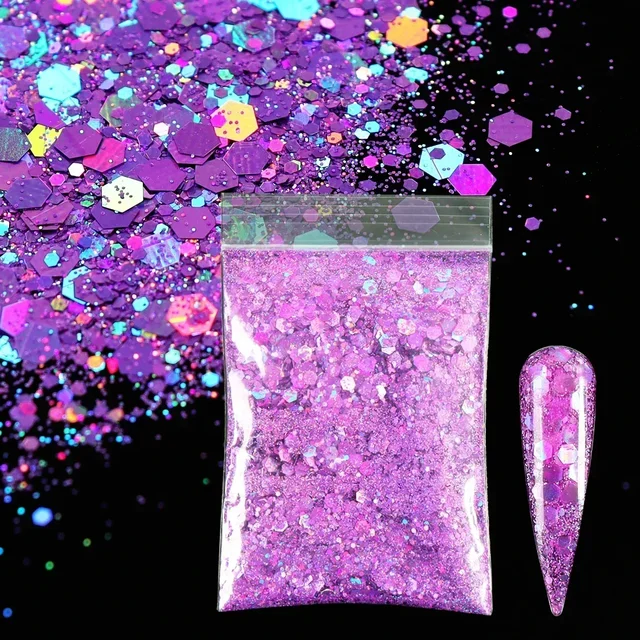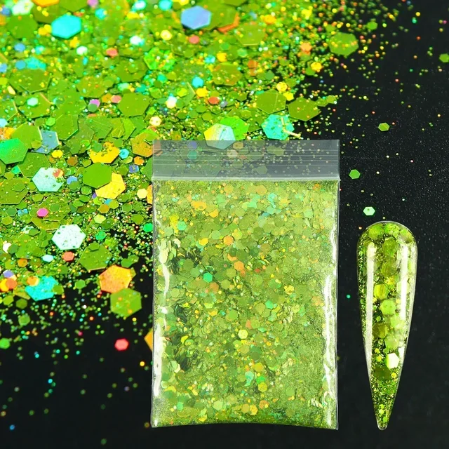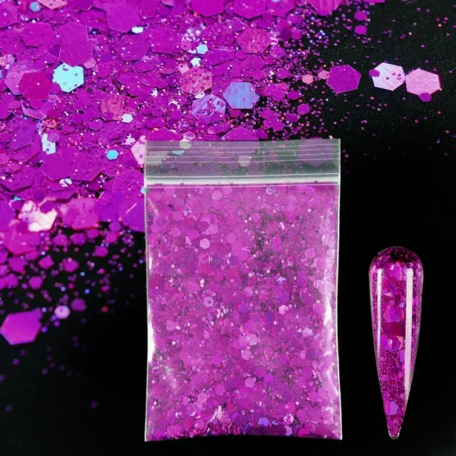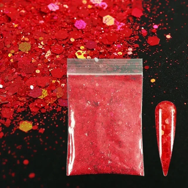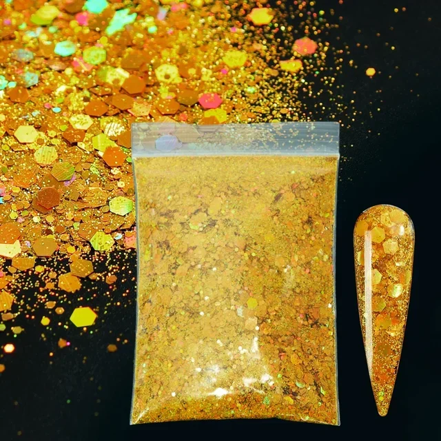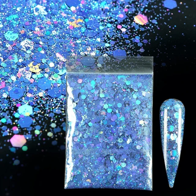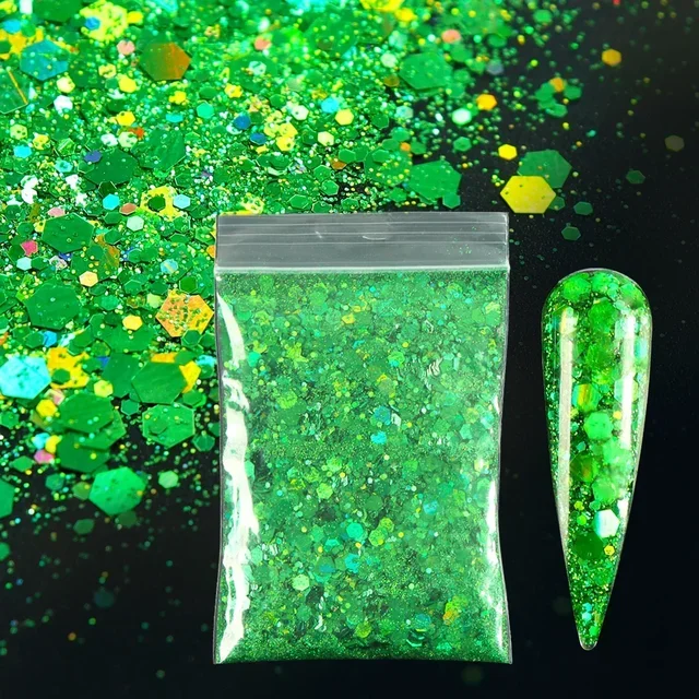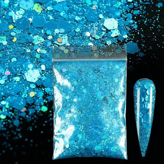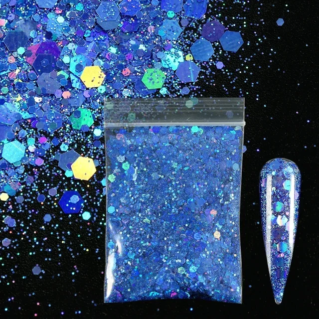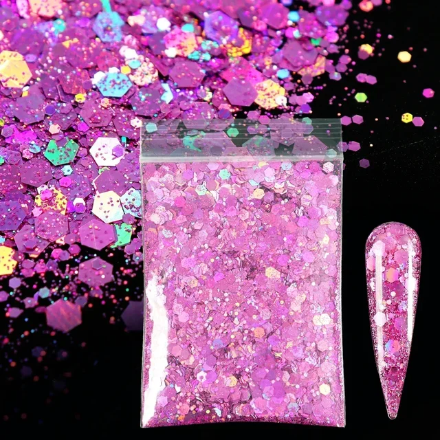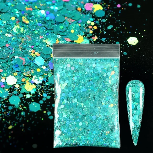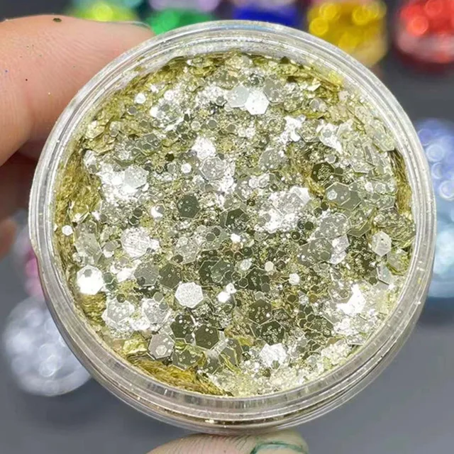 10G Sparkly White Hexagon Nail Sequins 3D Chunky Glitter Bulk Mix Flakes For Nail Art Decorations Charms Gel Polish DIY Manicure