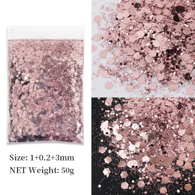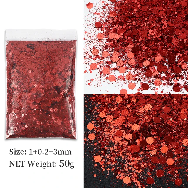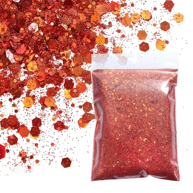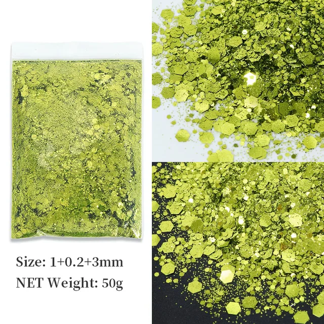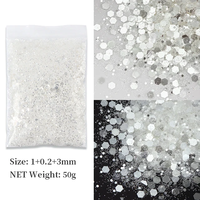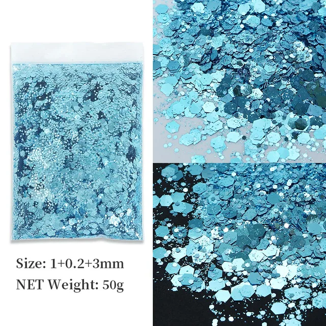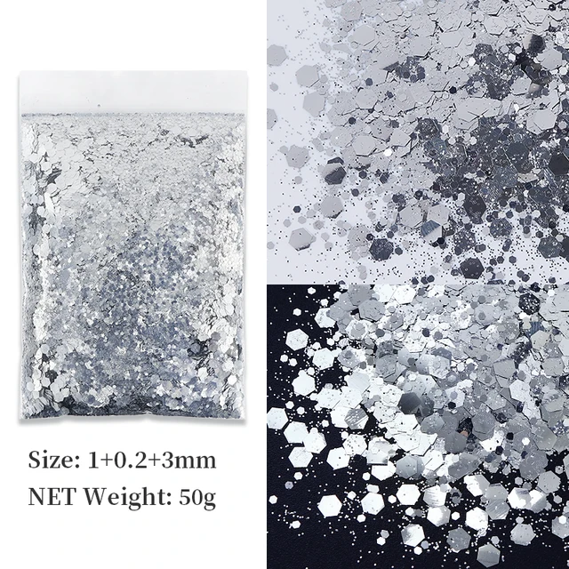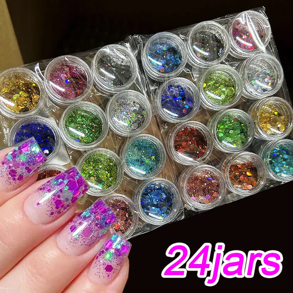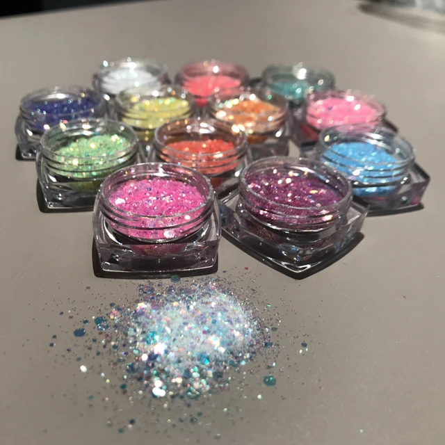 12Pots/set Hexagon Chunky Glitter Nail Sequins Shiny Holograhic Glitter Mermaid Nail Flakes Mixed Size Hexagon Glitter Flakes R3