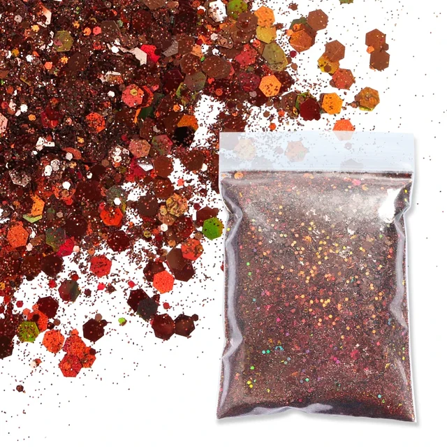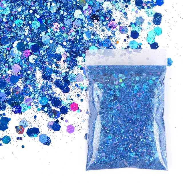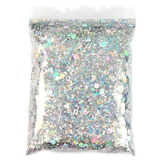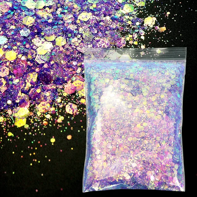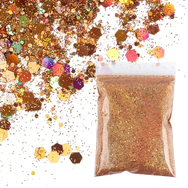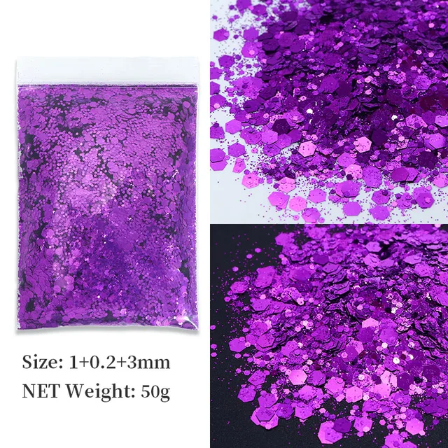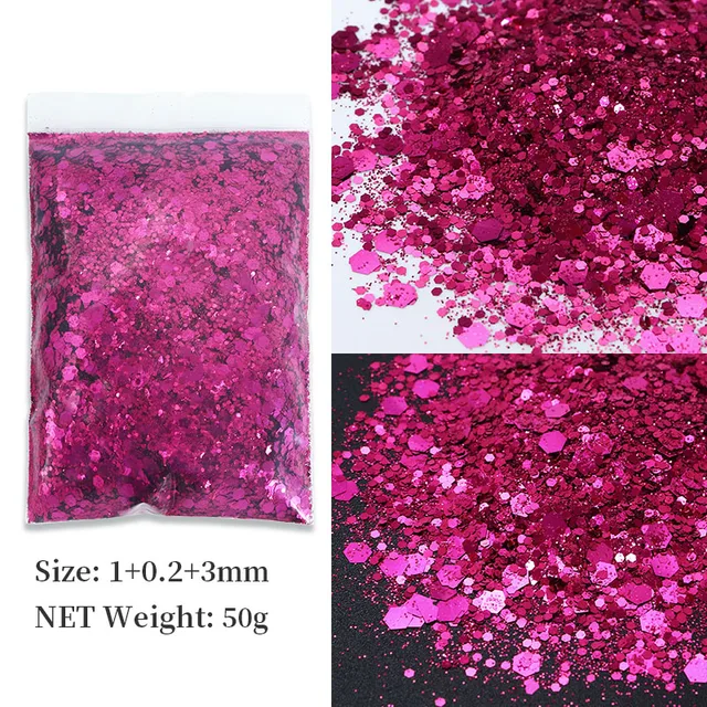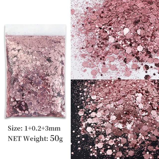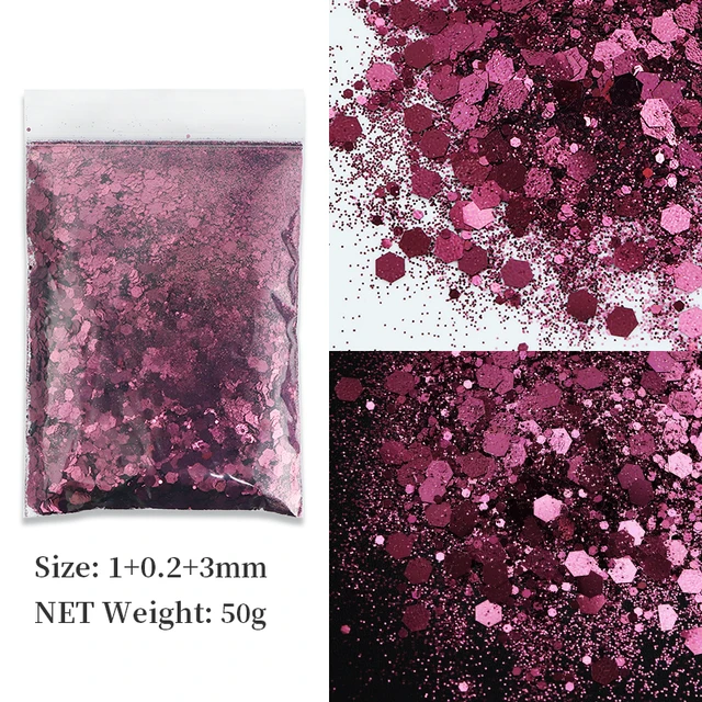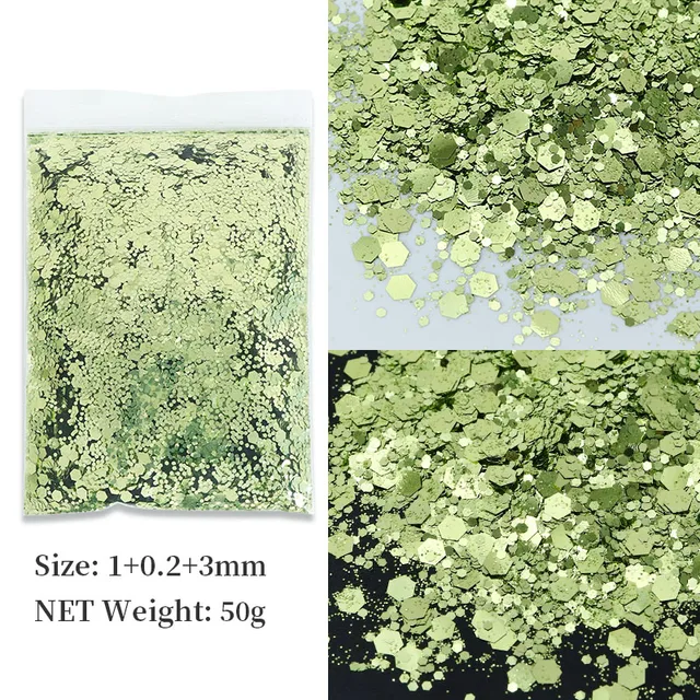 12Pots/set Hexagon Chunky Glitter Nail Sequins Shiny Holograhic Glitter Mermaid Nail Flakes Mixed Size Hexagon Glitter Flakes R3