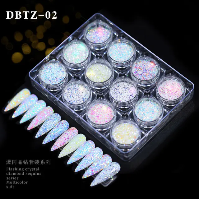 12pcs/set Nail Glitter Powder Dust Iridescent Flakes Sequins Gold Silver Super Shining Paillette Nail Art Manicure Decorations
