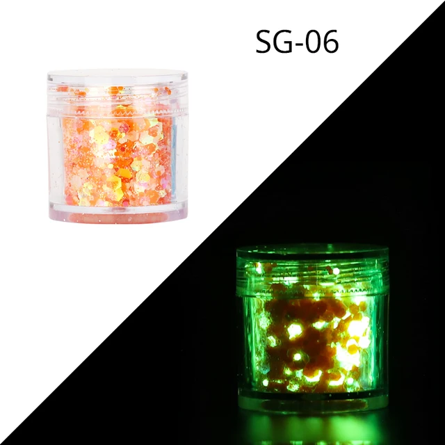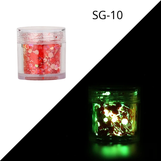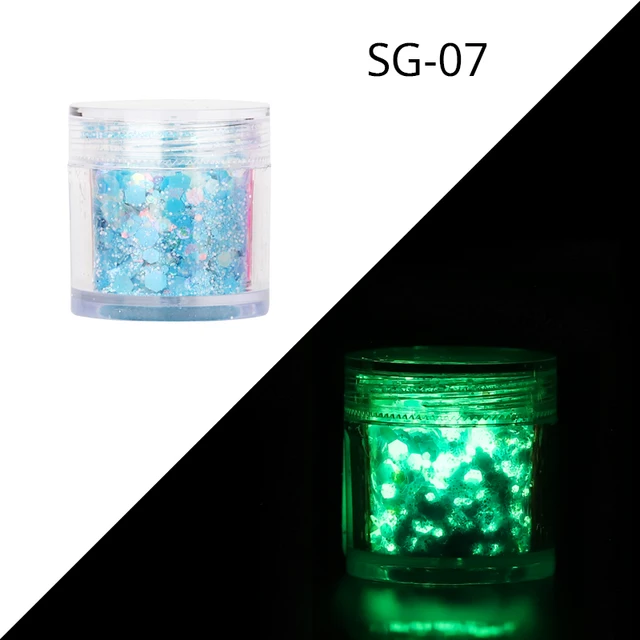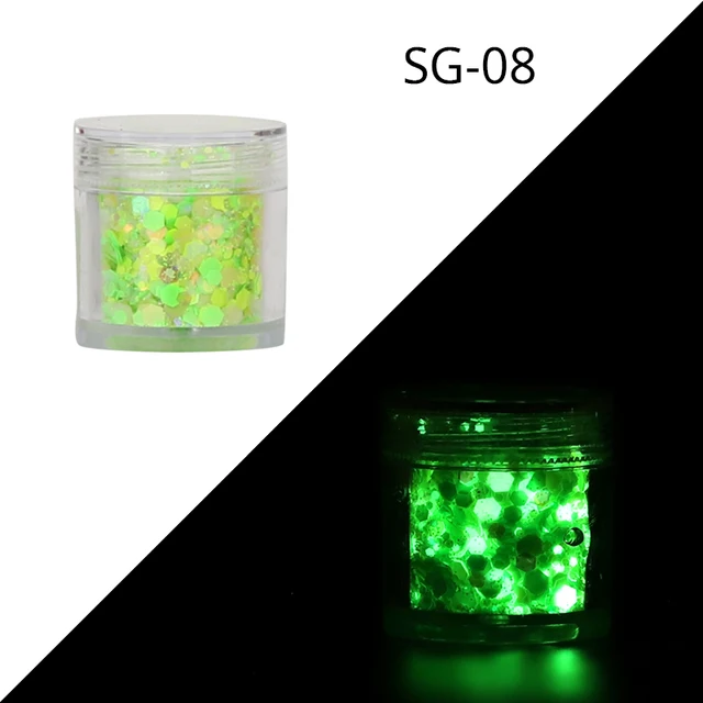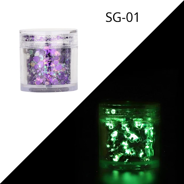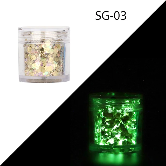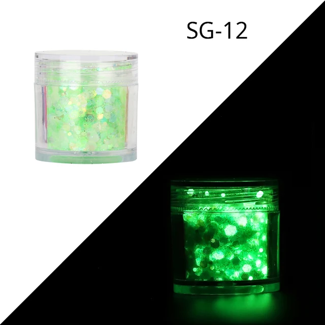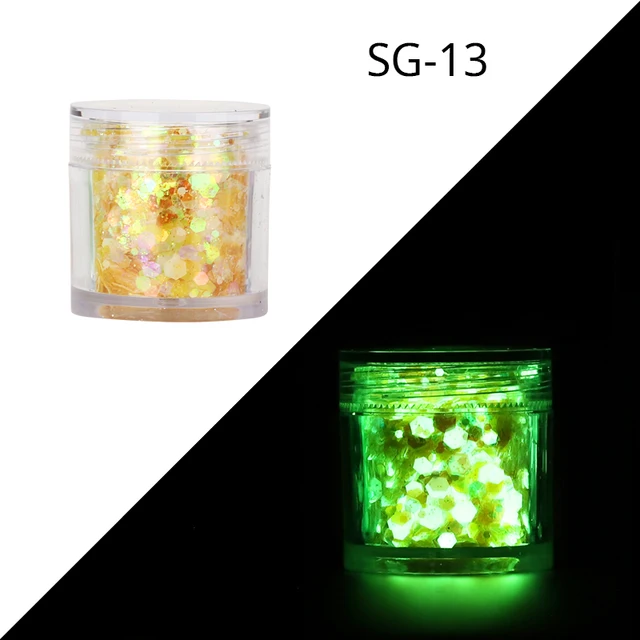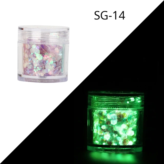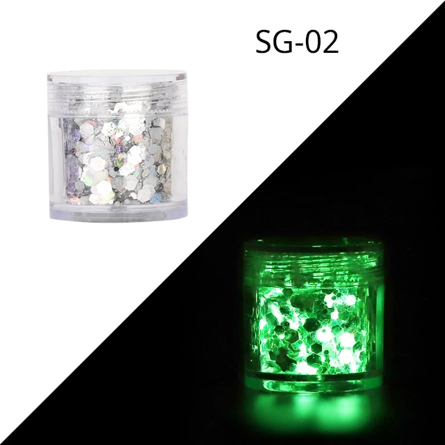 15 Colors-20g Glow in The Dark Glitter Luminous Chunky Nail Art Glitter Mixed Ultra Fine Powder Iridescent Hexagon UV Sequins