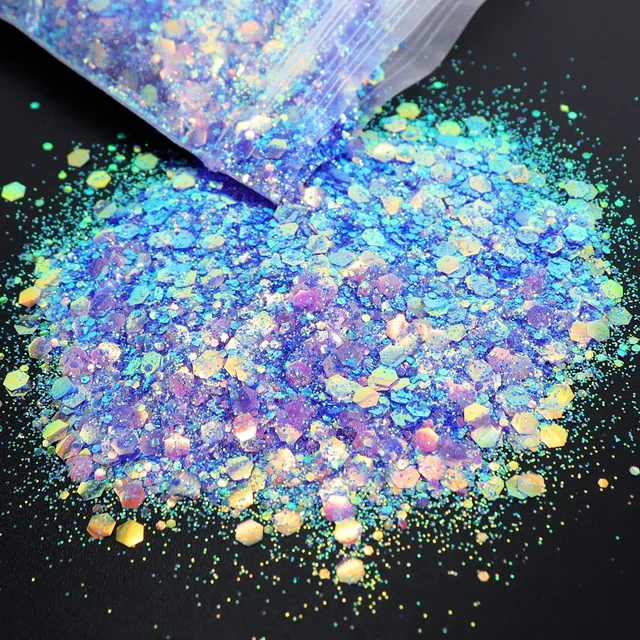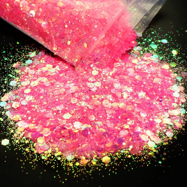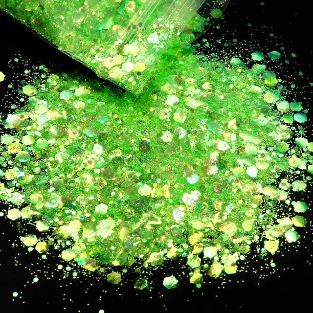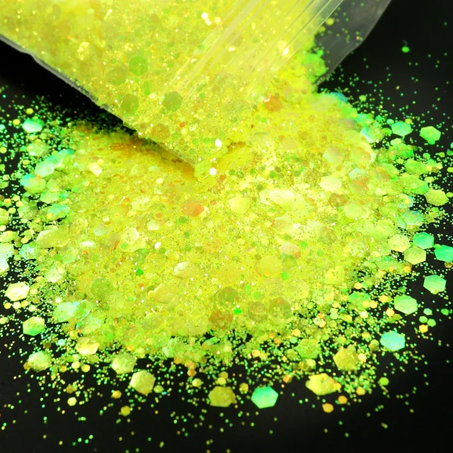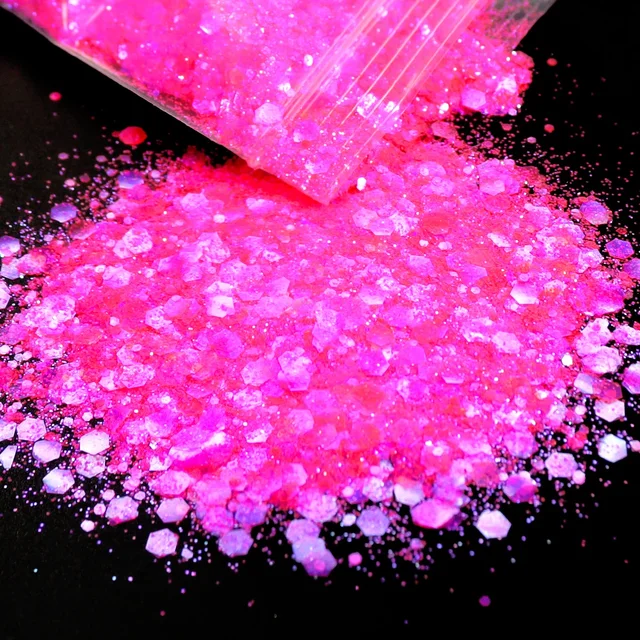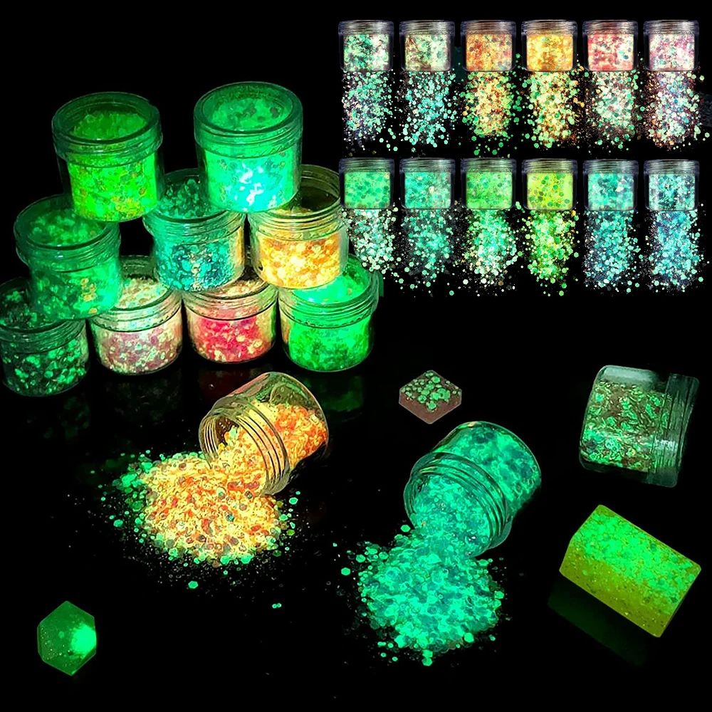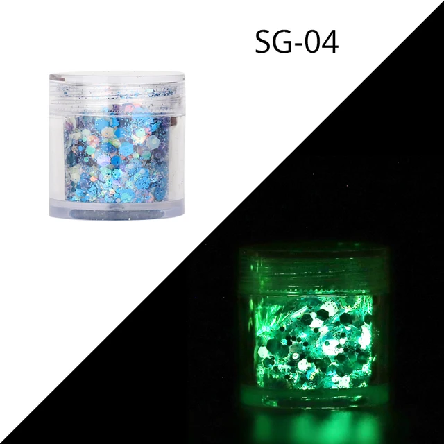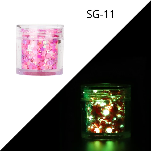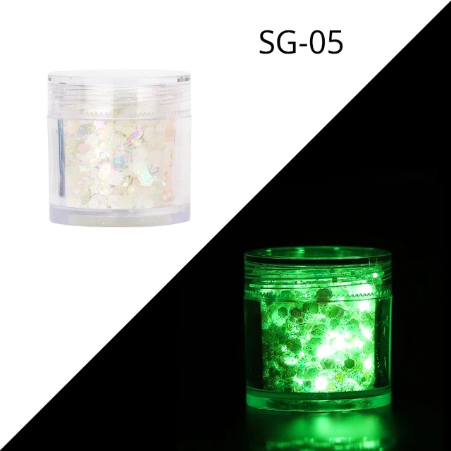 15 Colors-20g Glow in The Dark Glitter Luminous Chunky Nail Art Glitter Mixed Ultra Fine Powder Iridescent Hexagon UV Sequins