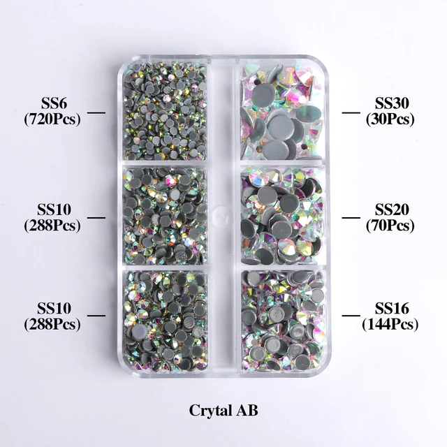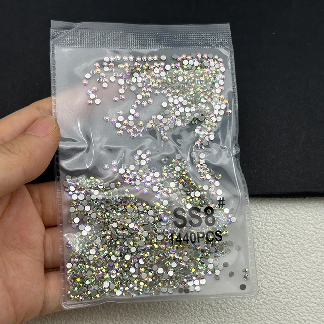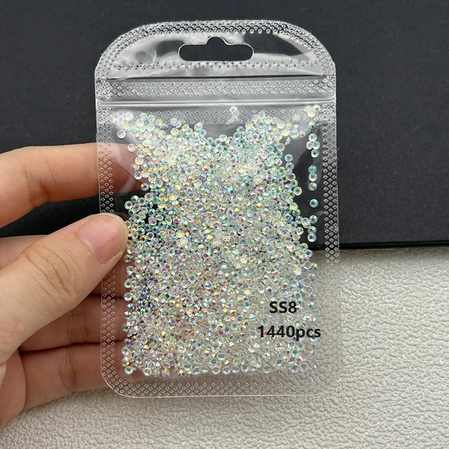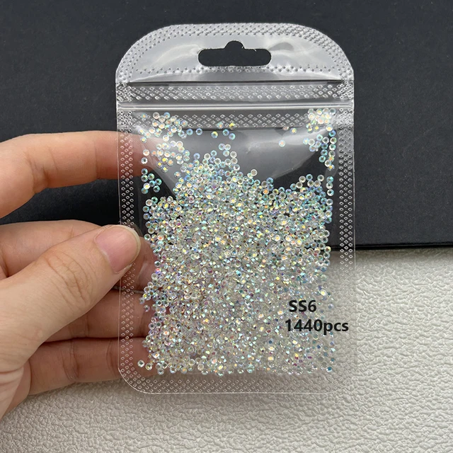 1440Pcs/bag AB/Clear Round Mini Nail Diamond SS3-SS20(1.3-4mm) FlatBack Non-Hotfix Nail Crystal Crystal Clear AB Manicure Glass