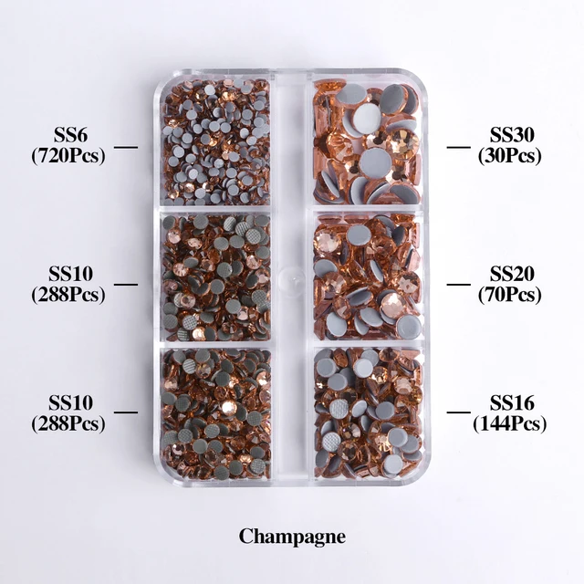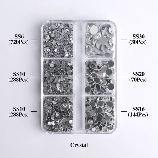 1540Pcs Mixed Sizes SS6-SS30 Glass Hotfix Rhinestones 6Grid Box Flat Back Glitter Crystal Strass Iron On Rhinestones for Clothes
