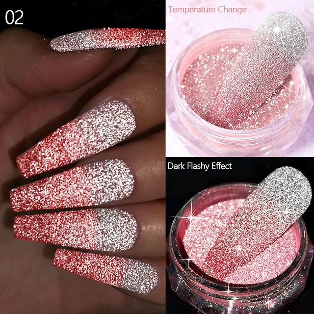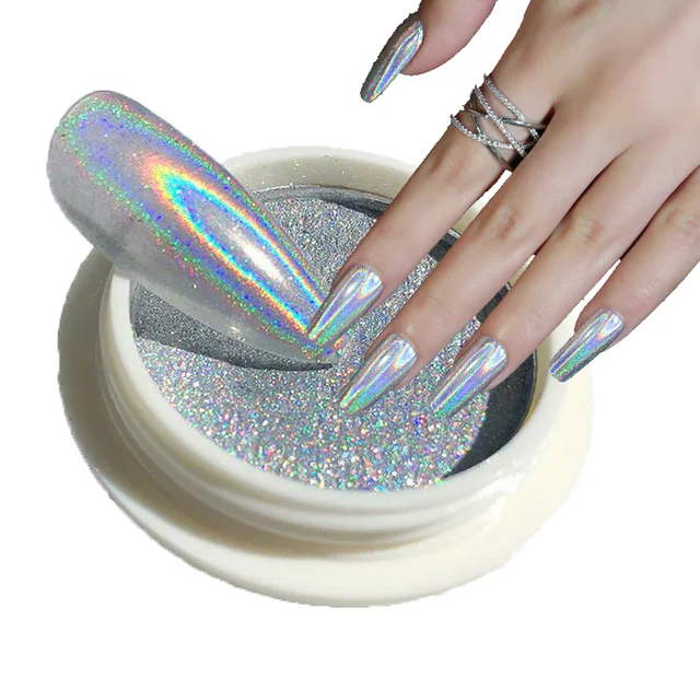 1g Powder Nails Laser Silver Pink Glitter Chrome Nail Powder Shimmer Gel Polish Flakes for Chrome Pigment Dust Nail Powder