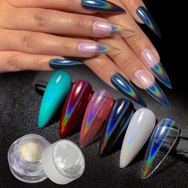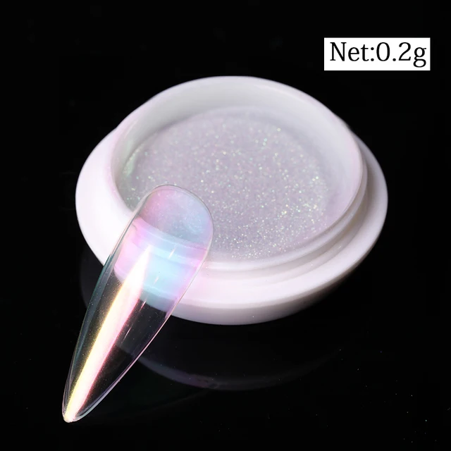 1Jar Aurora Unicorn Nail Chrome Pigment Rainbow Mirror Mermaid Nail Art Glitter Powder Chameleon Pearl Shell Color-Shift Dust F