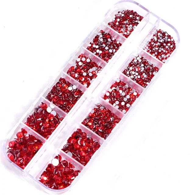 1Box SS4-20 Mixed Size Glass Red Rhinestones Nail Art Decorations Round Glitters Diamonds Strass Tip 3D with Storage Organize