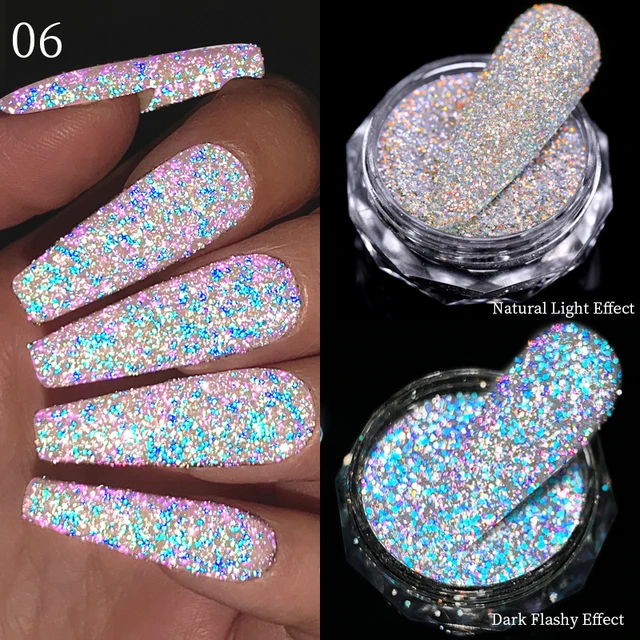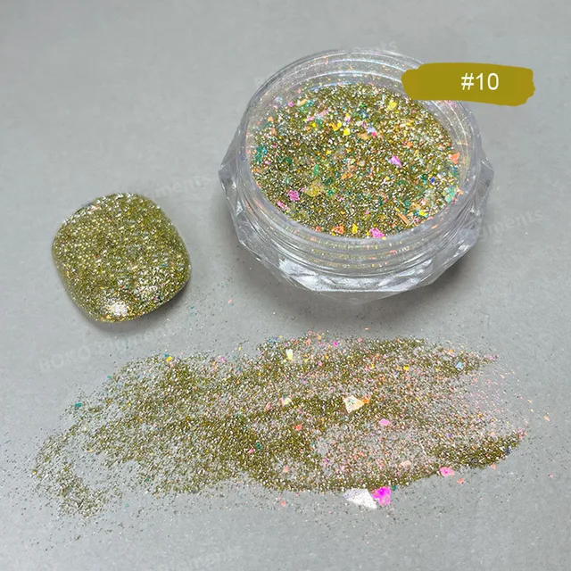1Jar Aurora Broken Diamond Nail Powder Holographic Iridescent Aurora Powder Mermaid Pigment Glitter Nail Art Chameleon Powder
