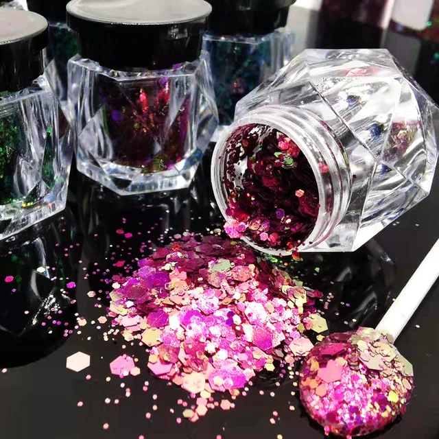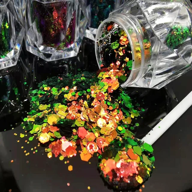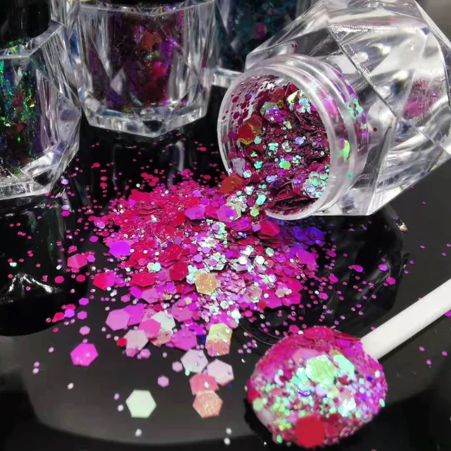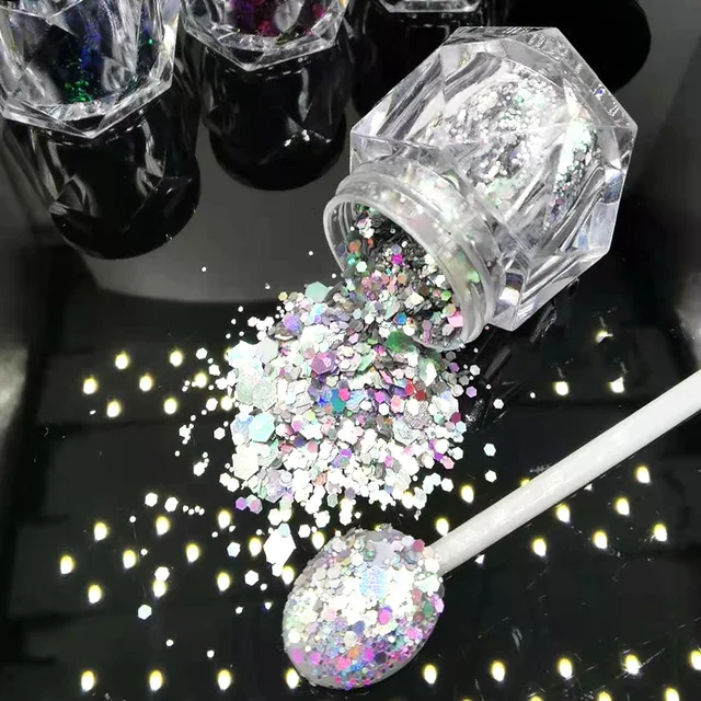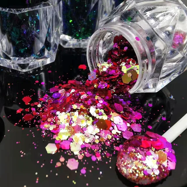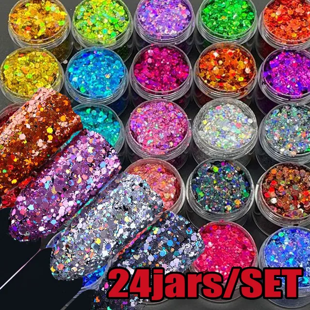 24 Colors Holographic Chunky Glitter 24 Colors Total Laser Nail Glitter Flakes Chunky Holographic Laser Nail Glitter