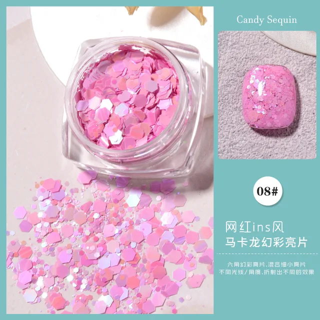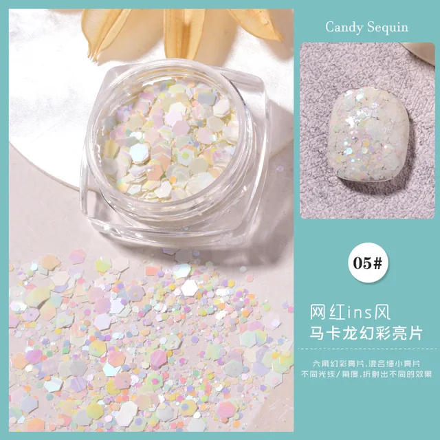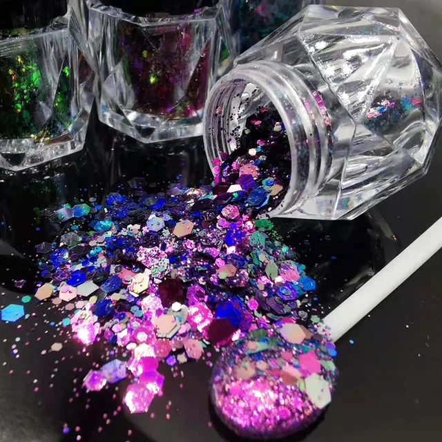 24 Colors Iridescent Nail Art Glitter Sequins Set Holographic Chunky Colorful Sparkly Hexagon Flakes 2024 Summer Nail Sequins